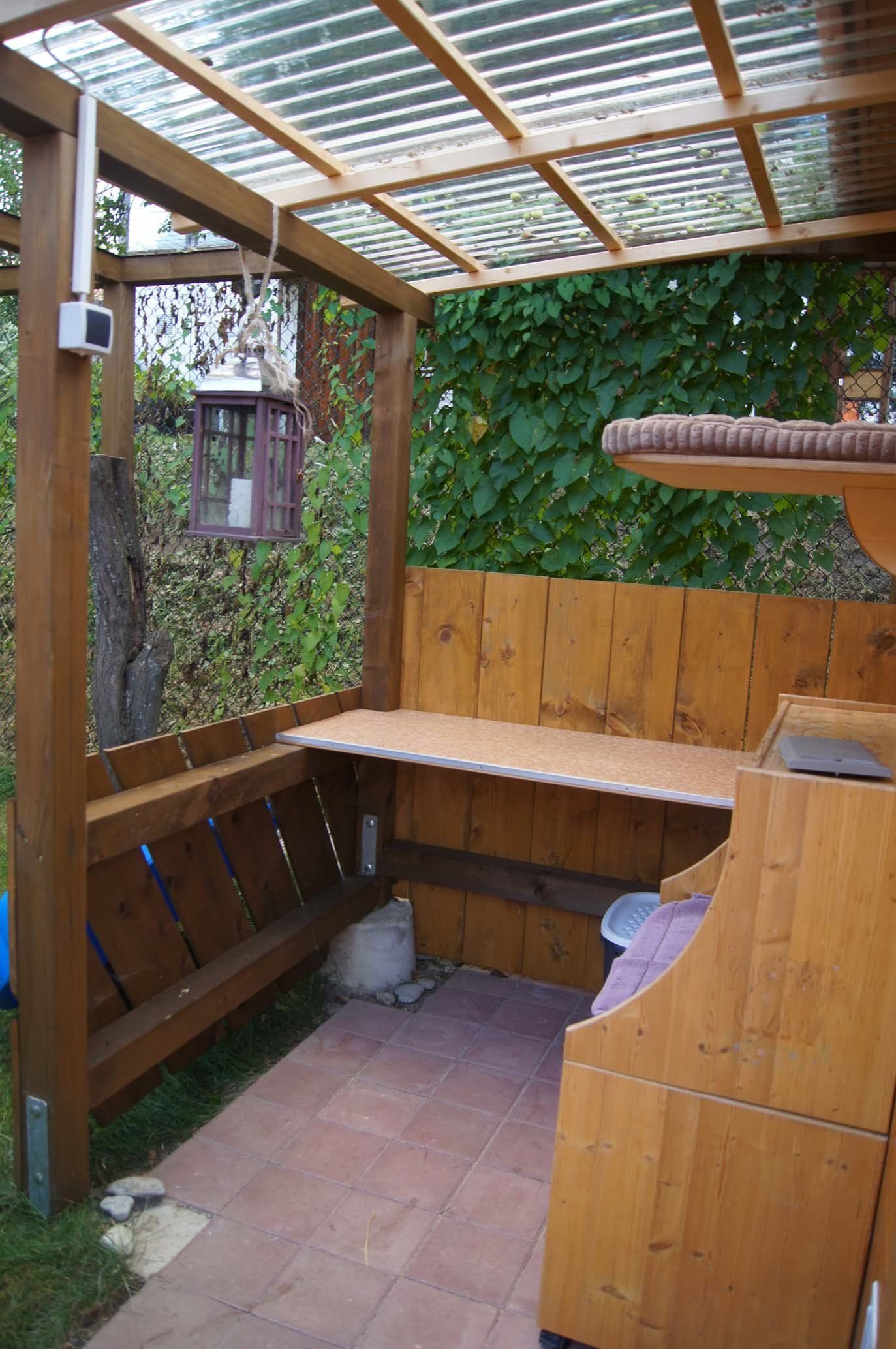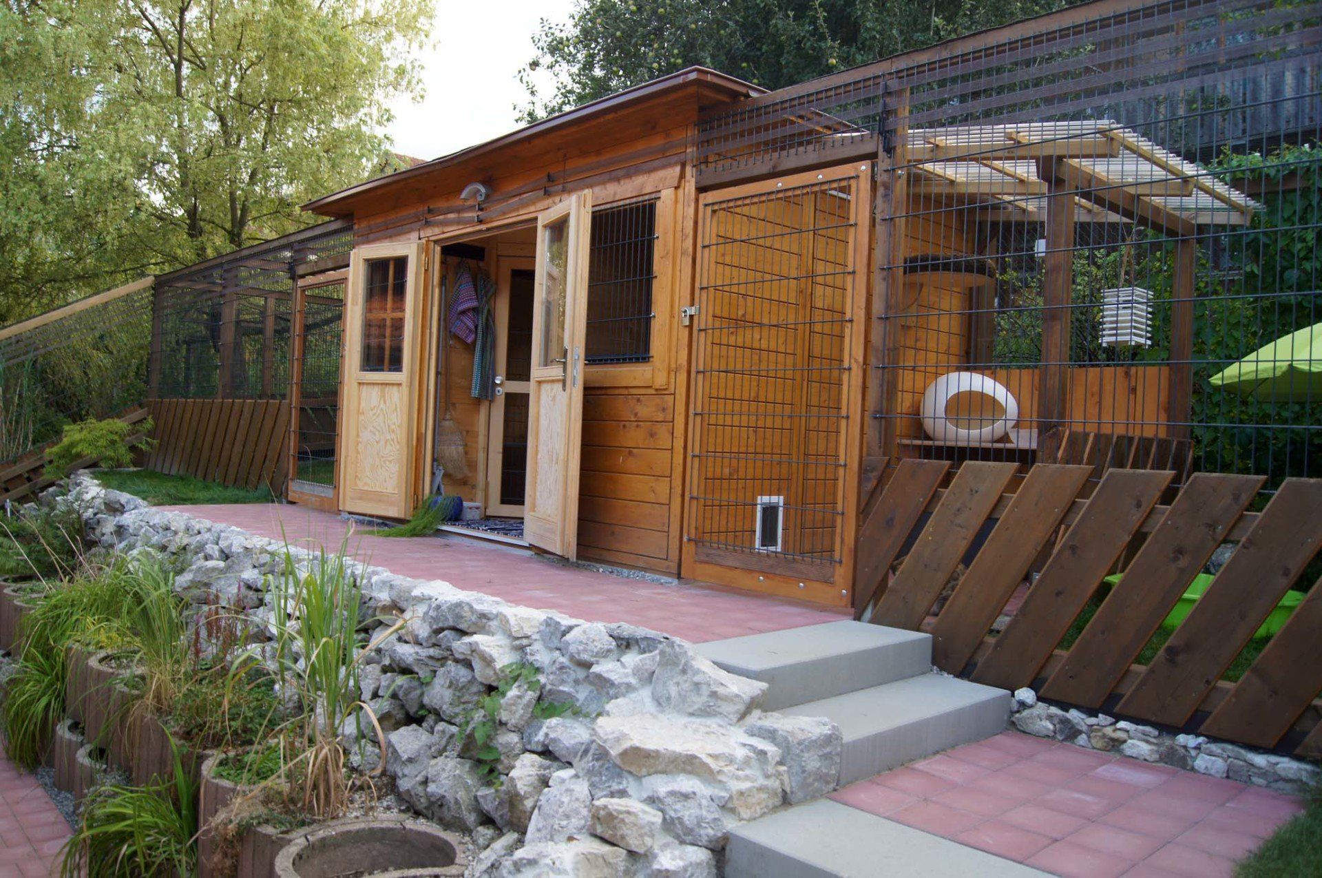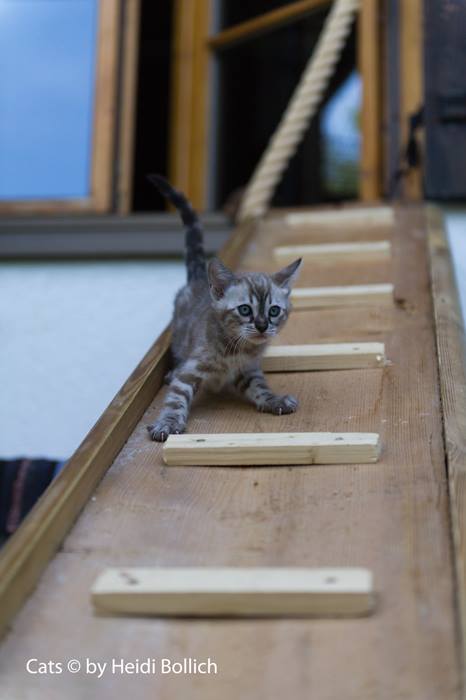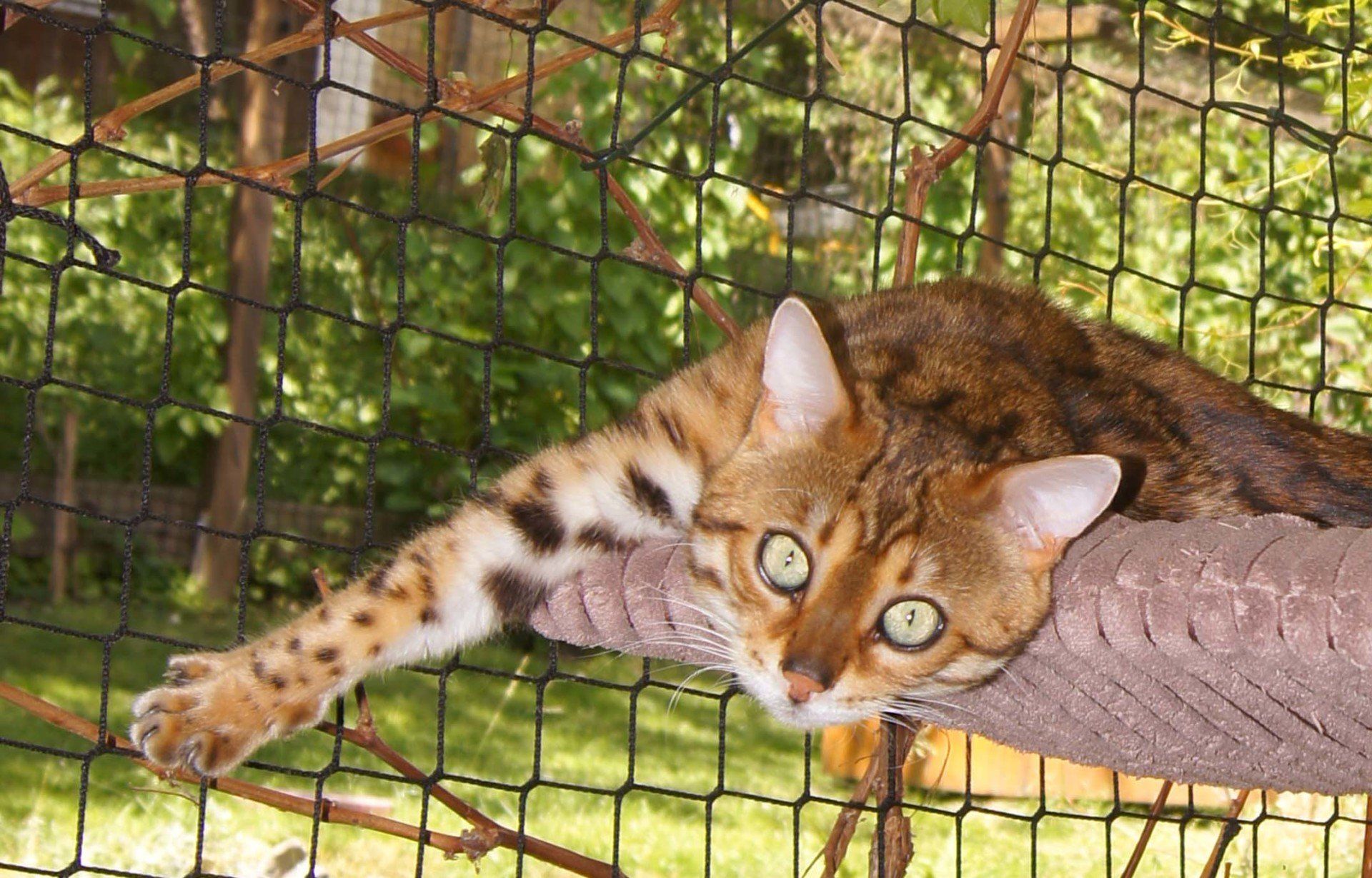Uns ist es wichtig, dass alle Zuchtkatzen Zugang zu einer Frischluftzone haben. Daher gibt es von der Küche eine Katzenklappe, die in den gesicherten Garten führt. Mädels und Jungtiere leben zusammen mit uns im Haus und können den Katzengarten jederzeit genießen. Für Mamas mit kleinerem Nachwuchs gibt es ein eigenes Kittengehege.