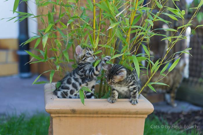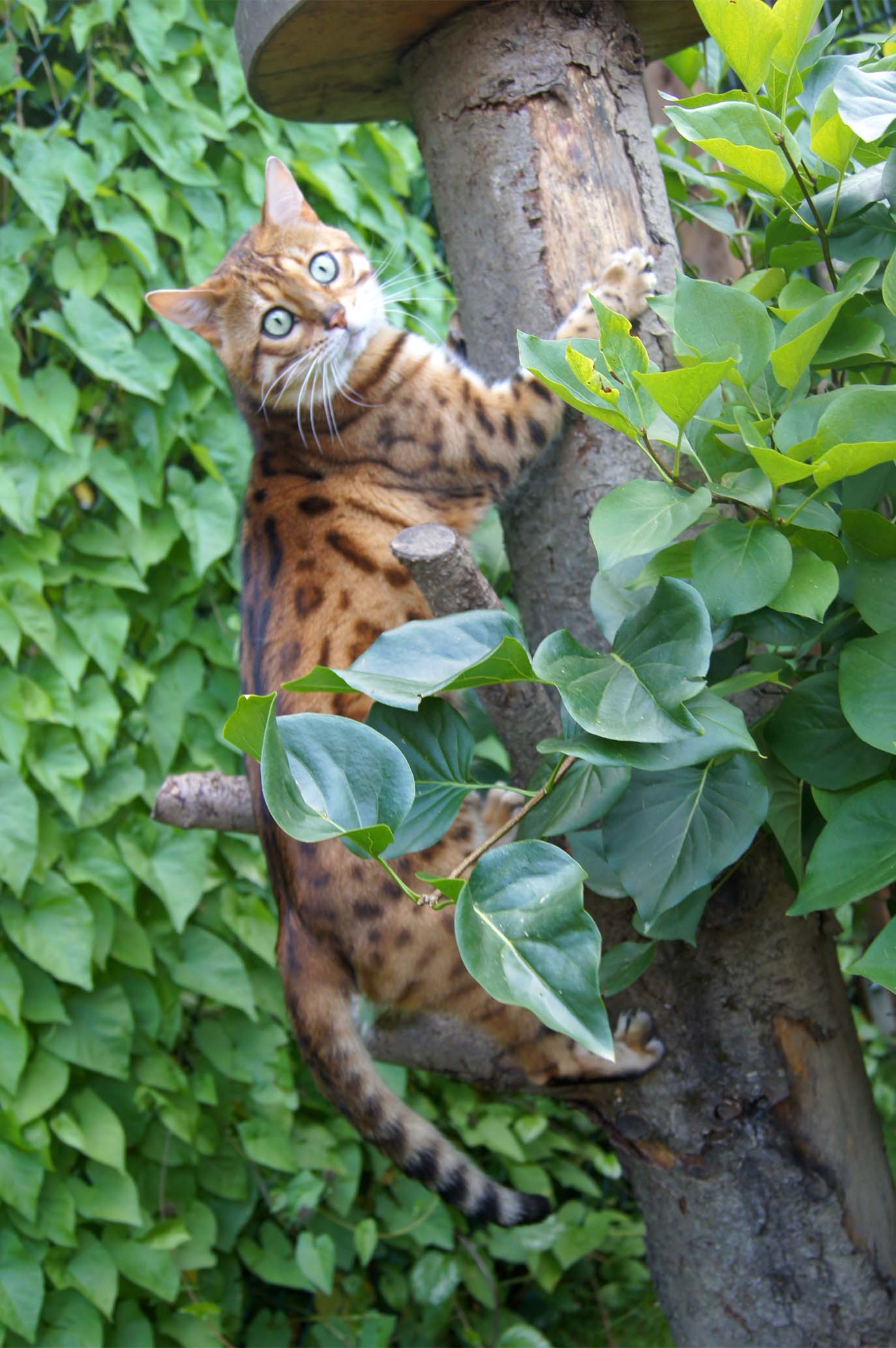 Potente Kater signalisieren durch Harnmakieren ihre Fortpflanzungsbereitschaft - besonders bei Bengalen ist das manchmal sehr ausgeprägt. Da wir diese duftende Form der Katzensprache nicht unbedingt im Wohnbereich haben möchten stehen ihnen beheizte Katerhäuser mit angrenzenden Freigehegen zur Verfügung.
